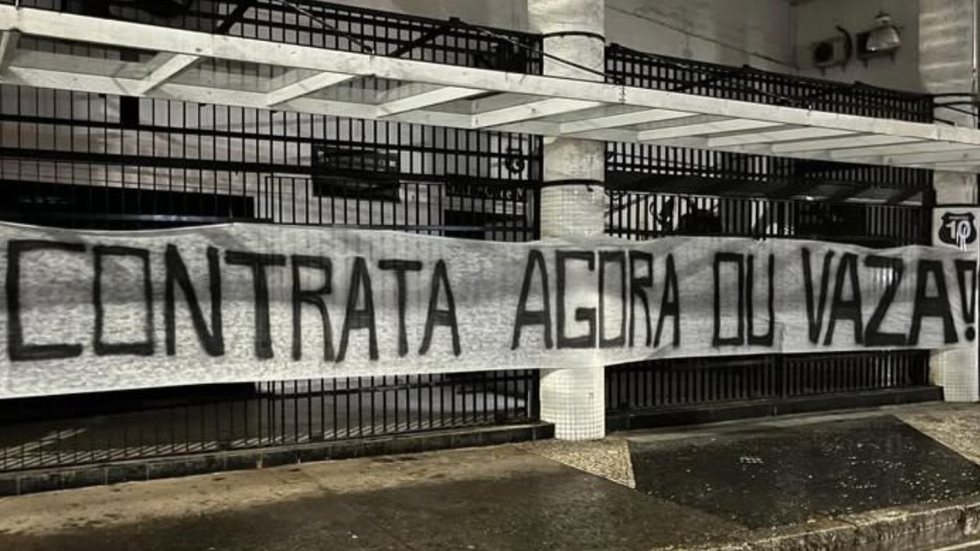 Desta vez, a faixa mostra a insatisfação pela falta de contratações do Peixe para esta temporada, além de colocar uma pressão para a diretoria santista. A frase é "Contrata agora ou vaza!".