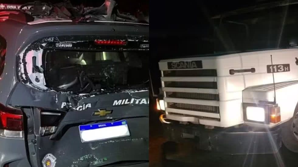 Foi nesse momento de espera que a situação saiu do controle. Uma carreta que passava pelo trecho perdeu a direção e foi para cima do acostamento. O veículo pesado bateu com violência na lateral da viatura da PM que estava parada. Com a força do impacto, o carro da polícia foi arremessado justamente sobre os dois policiais militares e um homem civil, que estava ali trocando o pneu do carro envolvido na primeira colisão.