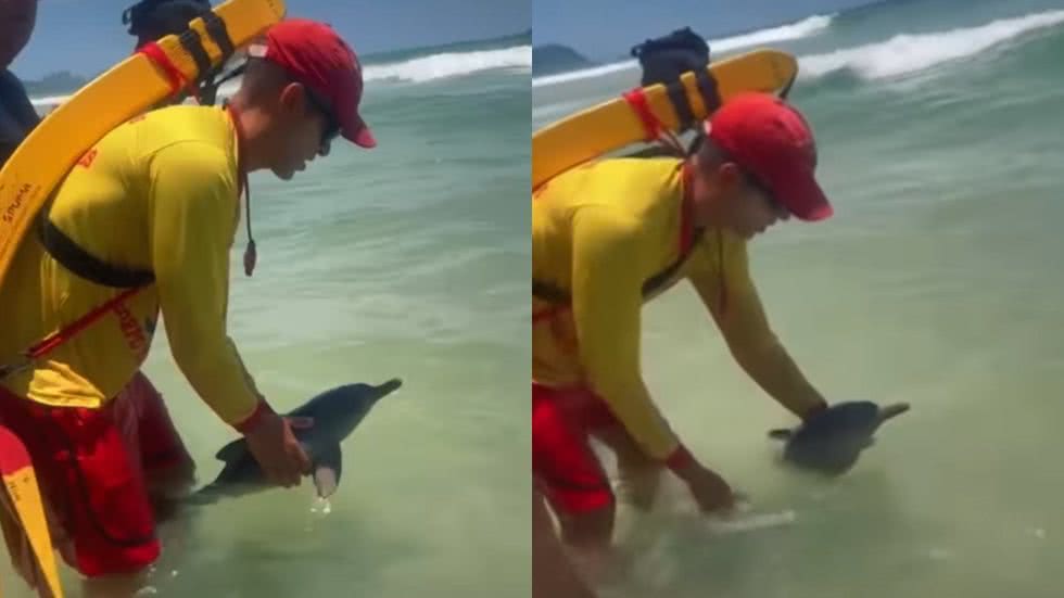 Quem passou pela região do Posto 7 ,na praia da Enseada em Guarujá, presenciou uma cena que fugiu totalmente da rotina de banhistas e guarda-vidas. Em vez de um salvamento de alguém se afogando, a emergência dessa vez envolveu um visitante ilustre e muito frágil: um filhote de golfinho. O animalzinho acabou ficando preso na parte rasa e, por algum motivo, não conseguia retornar sozinho para o fundo do mar, gerando preocupação em quem estava por perto.
