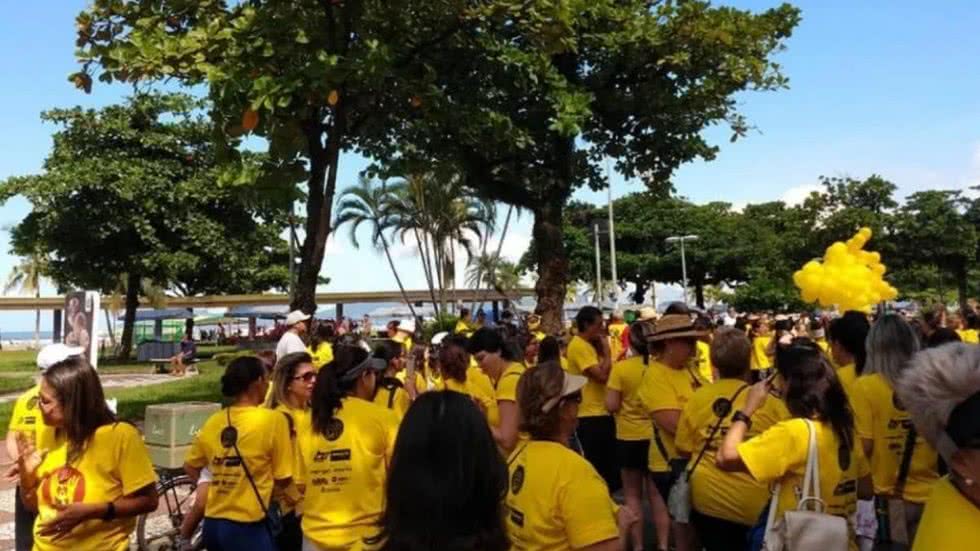 As camisetas, em número limitado, serão distribuídas durante a concentração da caminhada, e os participantes são incentivados a usar roupas e adereços na cor amarela.