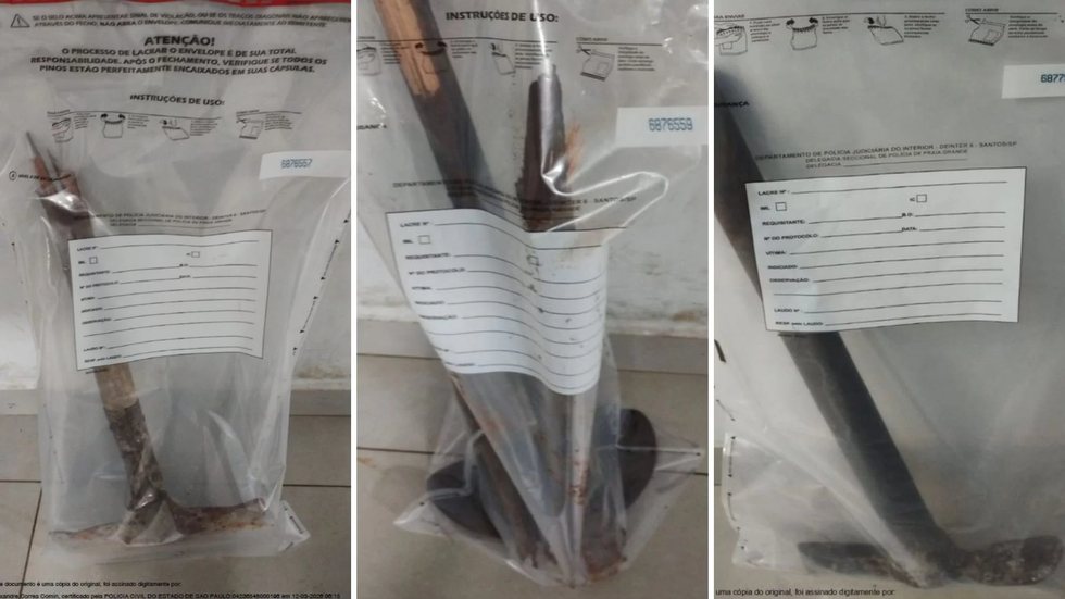 Após serem acionados, policiais militares foram até a residência do casal e localizaram o suspeito, que foi preso em flagrante. Durante a ação, foram apreendidos os objetos utilizados nas agressões, entre eles uma pá, uma enxada e uma picareta.