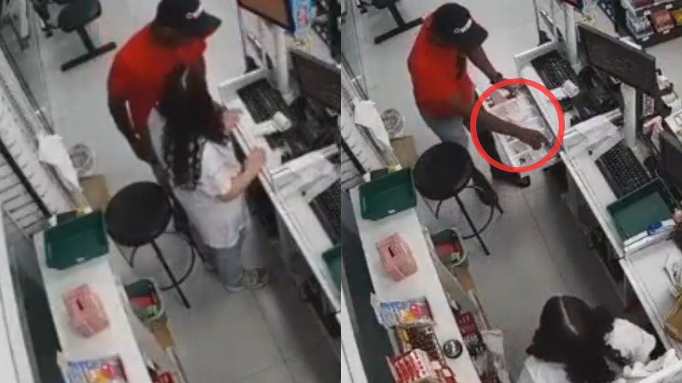 Imagens de monitoramento mostram o suspeito intimidando funcionária e fugindo a pé