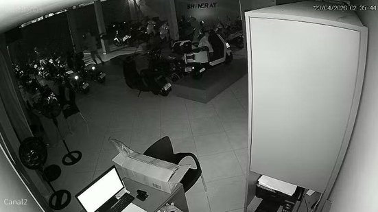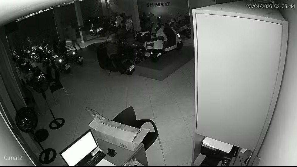Uma loja de veículos foi alvo de criminosos na madrugada desta semana em Praia Grande, no litoral paulista. Dois homens invadiram o estabelecimento após quebrarem a vitrine de vidro e furtaram ao menos dois itens, entre eles um patinete elétrico e um drift — espécie de triciclo motorizado.