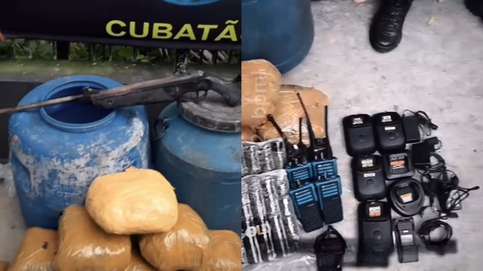 Dentro dos recipientes, que funcionavam como um "paiol" improvisado, os policiais militares encontraram uma grande quantidade de drogas já fracionadas para a venda, além de uma espingarda em bom estado de conservação. O que chamou a atenção da equipe foi a presença de diversos rádios comunicadores. Esses aparelhos são peças fundamentais na estrutura do tráfico local, utilizados por "olheiros" para monitorar a chegada de viaturas e coordenar a movimentação dos pontos de venda de drogas em tempo real.