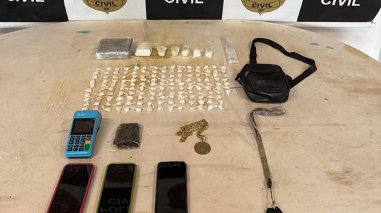 Para além das drogas, a equipe também confiscou objetos que ajudam a entender como o esquema funcionava. Foram levados três celulares e uma máquina de passar cartão, que possivelmente eram usados para fechar as vendas e organizar as entregas. Outros itens utilizados na logística do crime também foram retirados do imóvel e agora passarão por uma análise técnica da perícia.