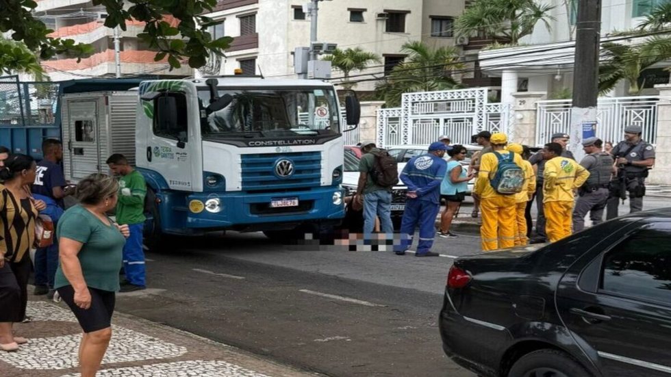Acidente entre moto e caminhão ocorreu na Avenida Presidente Wilson, no Gonzaga, em Santos. - Imagem: Vinícius Dantas