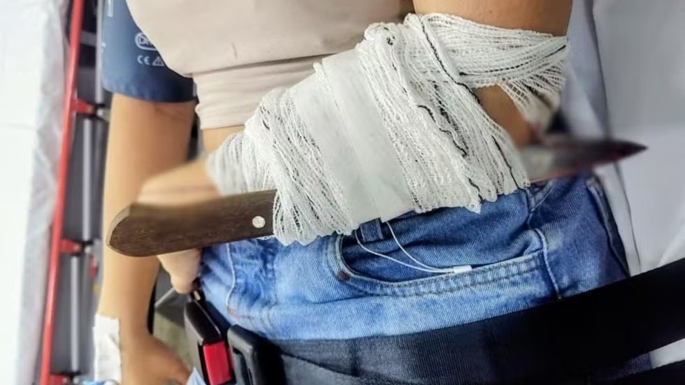 Jovem foi socorrida com faca cravada no braço após confusão em bar na região central de Santos - Imagem: g1 Santos