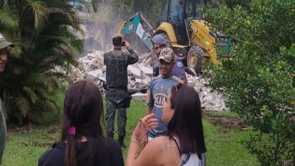 Equipes realizam demolições na Barra do Una, em Peruíbe, em meio a impasse judicial e protestos de moradores locais - Imagem: Reprodução