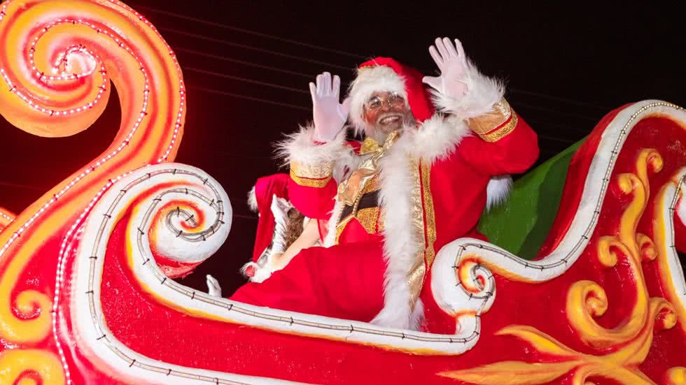 A Parada de Natal em Bertioga promete encantar com carros alegóricos e uma trilha sonora especial, criando uma atmosfera mágica para todos - Foto: Divulgação/ Prefeitura de Bertioga/ Laura Vid
