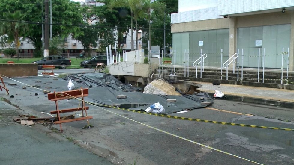 Impasse entre construtora e prefeitura deixa cratera aberta e garagens interditadas em São Vicente
