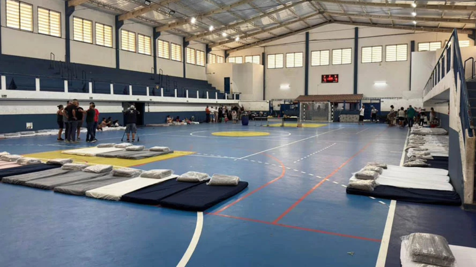 Abrigo emergencial montado no ginásio acolheu famílias afetadas pelas chuvas em Mongaguá - Imagem: Prefeitura de Mongaguá