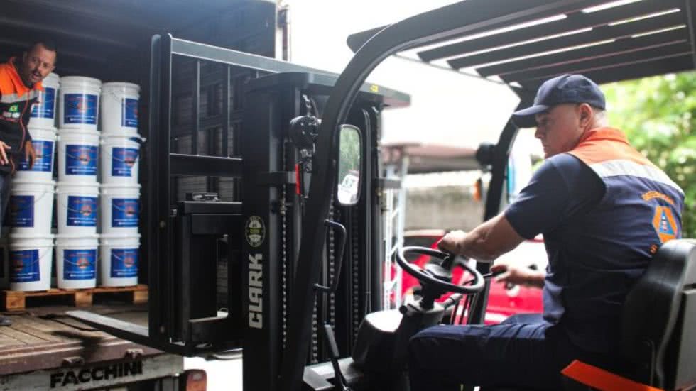 A entrega de ajuda em Peruíbe é organizada entre prefeituras e órgãos estaduais - Imagem: Reprodução