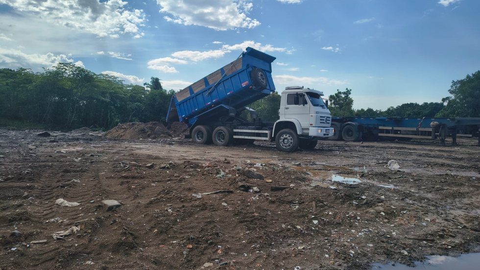 GCM de São Vicente flagra caminhão aterrando área de mangue no Jardim Rio Branco