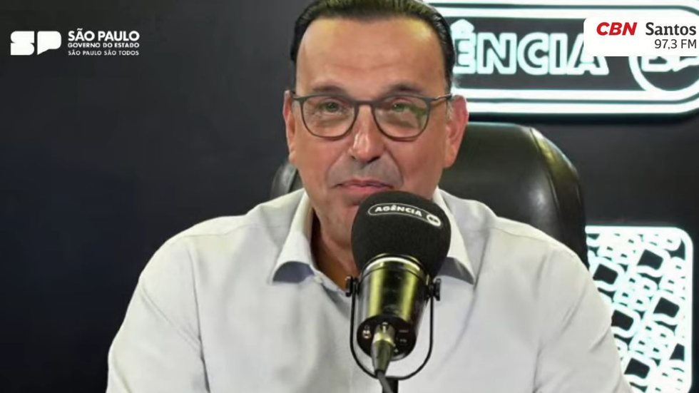Governador Felicio Ramuth discute desabastecimento de água na Baixada Santista e as causas históricas do problema - Foto: Rádio CBN Santos