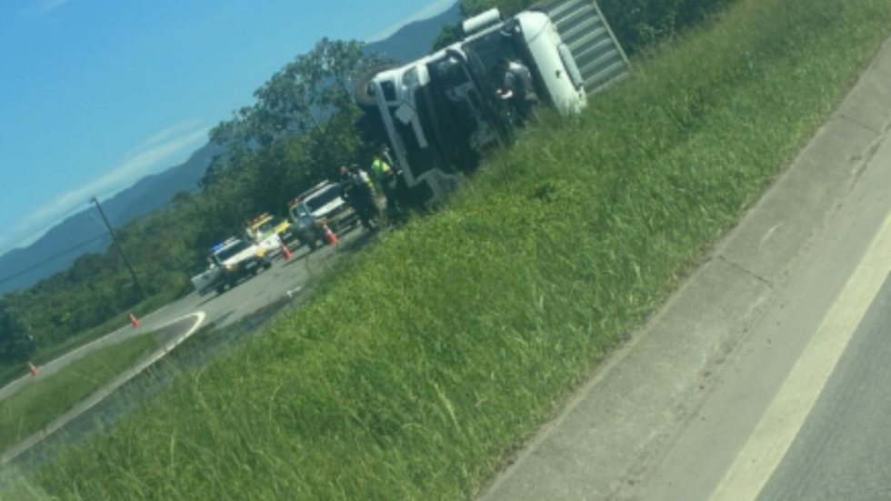 Um caminhão tombou na saída do bairro Morrinhos, causando lentidão e transtornos no tráfego local nesta manhã - Foto: Reprodução