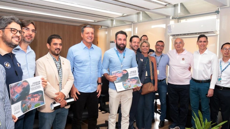 Representantes do Governo e da Caixa visitam obras do Parque Palafitas - Imagem: Divulgação / Prefeitura de Santos