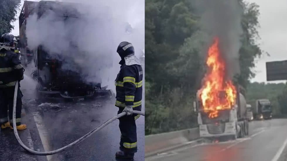 Incêndio em caminhão com álcool em rodivia gera 9 km de trãnsito em Cubatão