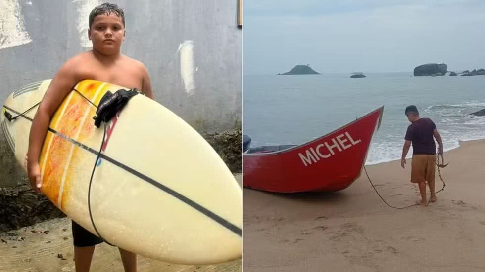 Michel, de 10 anos, utilizou a prancha para manter casal flutuando até chegada de ajuda na Prainha Branca. - Imagem: Arquivo Pessoal